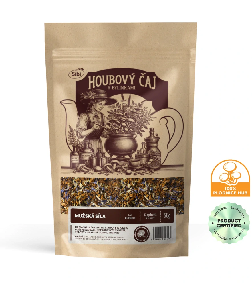 Houbový čaj MUŽSKÁ SÍLA рodporuje vnitřní sílu, odolnost a mužskou rovnováhu